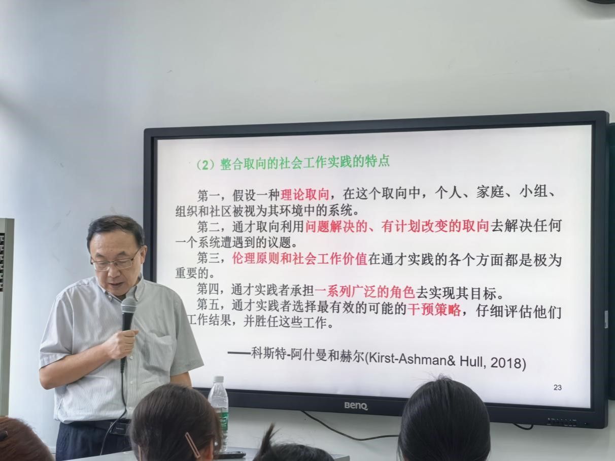 2025年9月24日下午,应社会发展研究院邀请,著名社会工作专家、中国青年政治学院陈树强教授在光华校区明德楼为我院师生开展了“整合取向的社会工作实践”专题讲座,讲座由李权财副教授主持,2025级全体社工学生及部分教师参加了此次讲座。